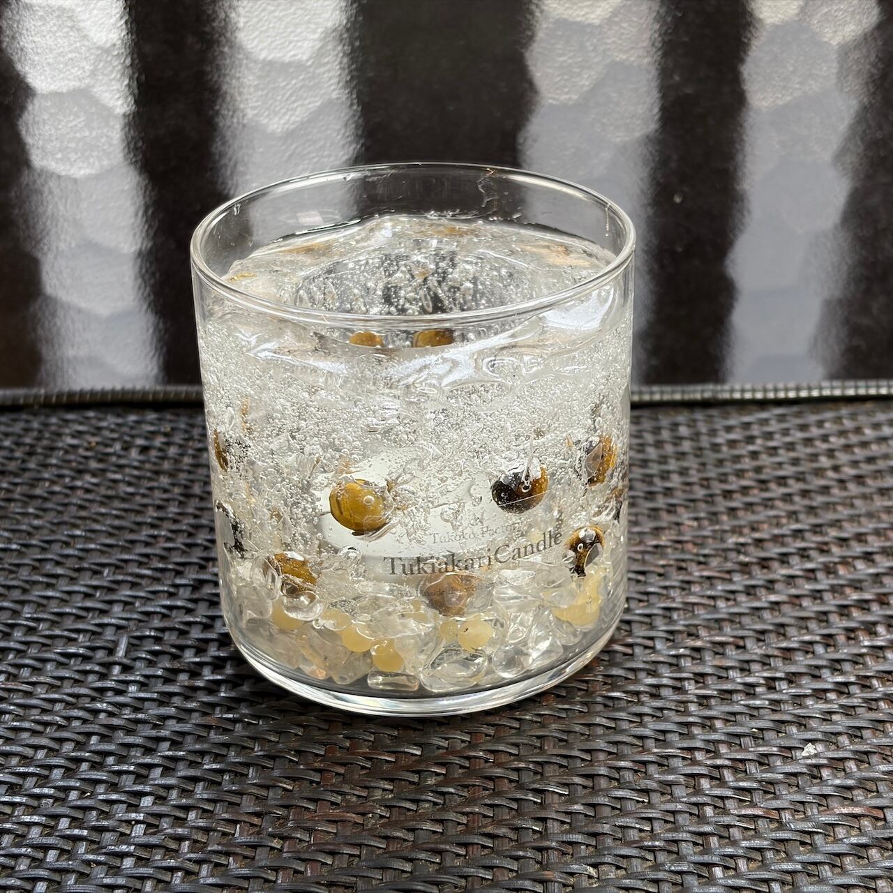 透明なガラスの中に、厳選したパワーストーンを丁寧に封入した、当店オリジナルの特別なキャンドルライトです